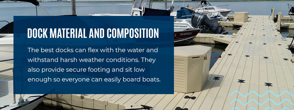 Choosing a dock material that withstands these conditions with minimal maintenance, like polyethylene or composite, is ideal.